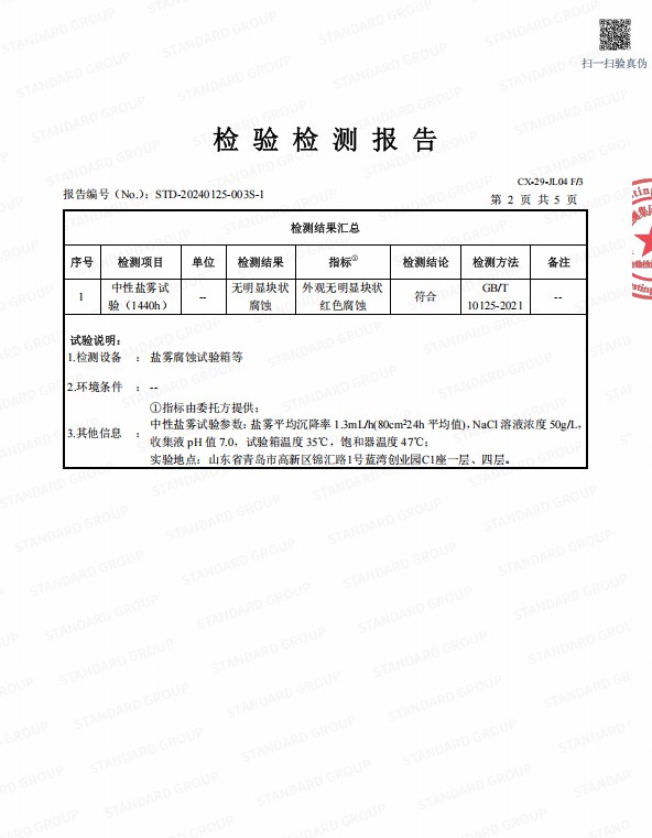 中性盐雾检验检测报告